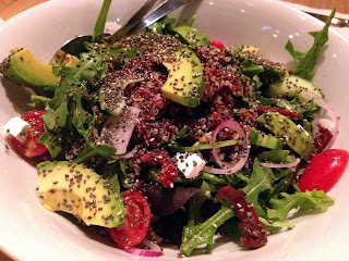 Recipe: Spinach, Wasabi Peas, Tomato, Red Onion, Avocado, Shredded Carrots, Olive Oil, Lemon Juice